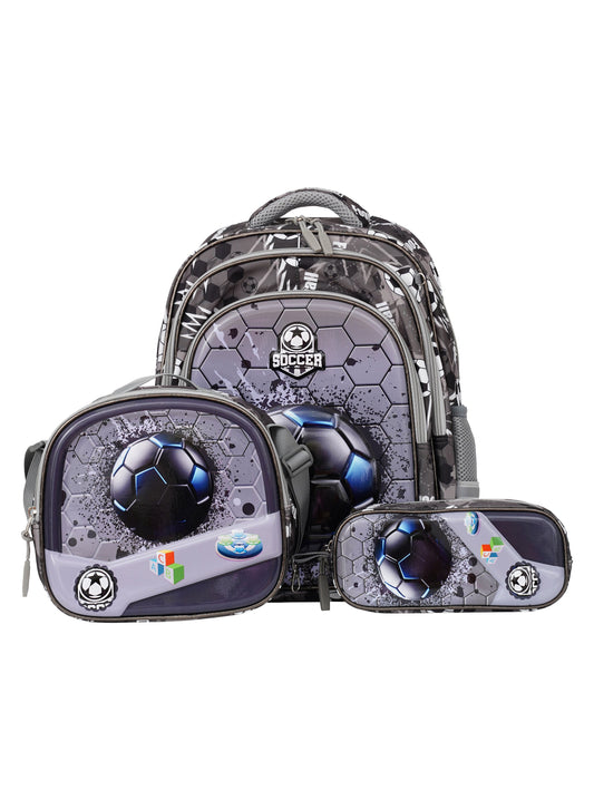 Para John Kiddokit Series Kids 3-Piece Roller School Bag Set – 18 Inch Trolley Backpack, Lunch Bag & Pencil Case- grey