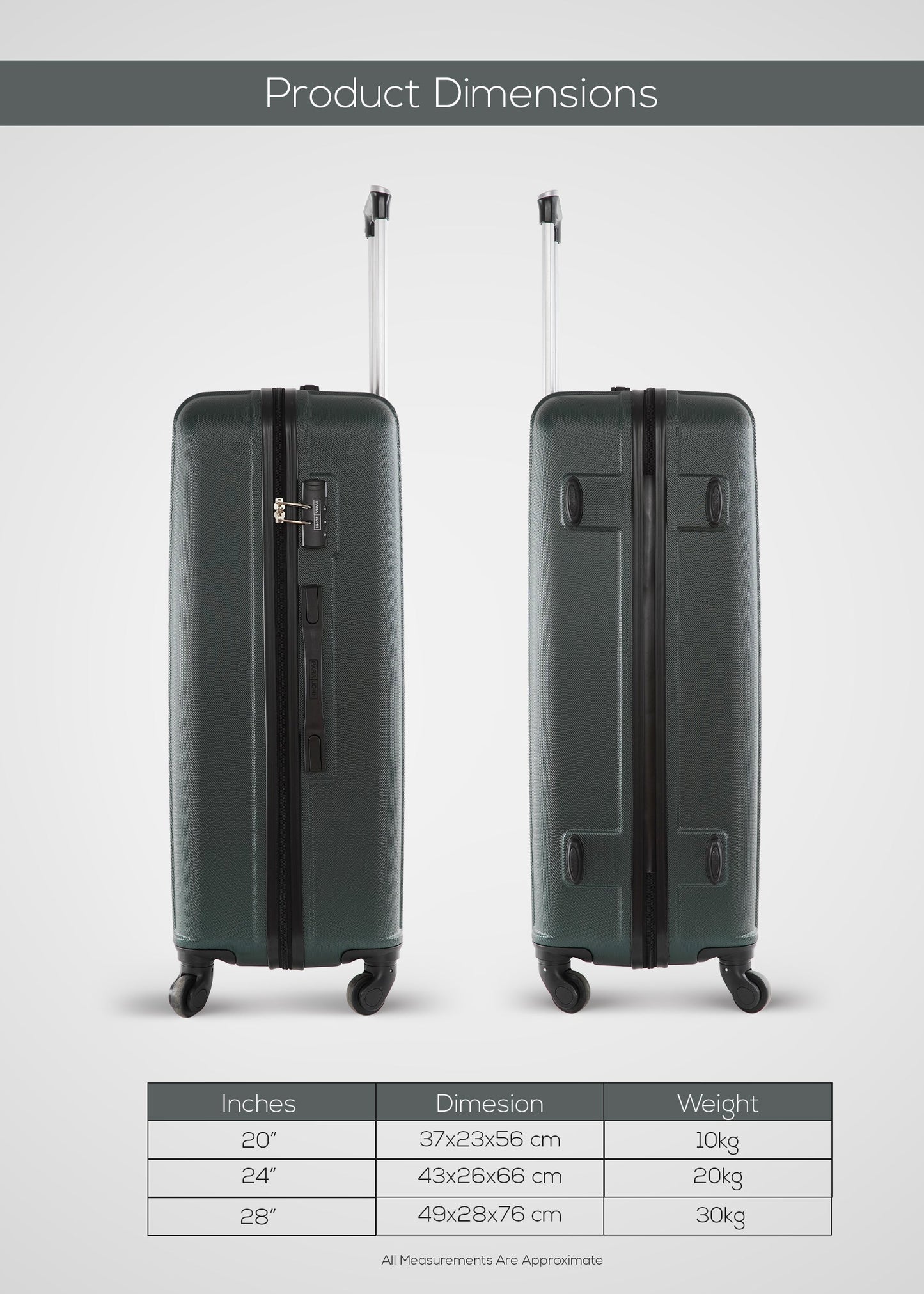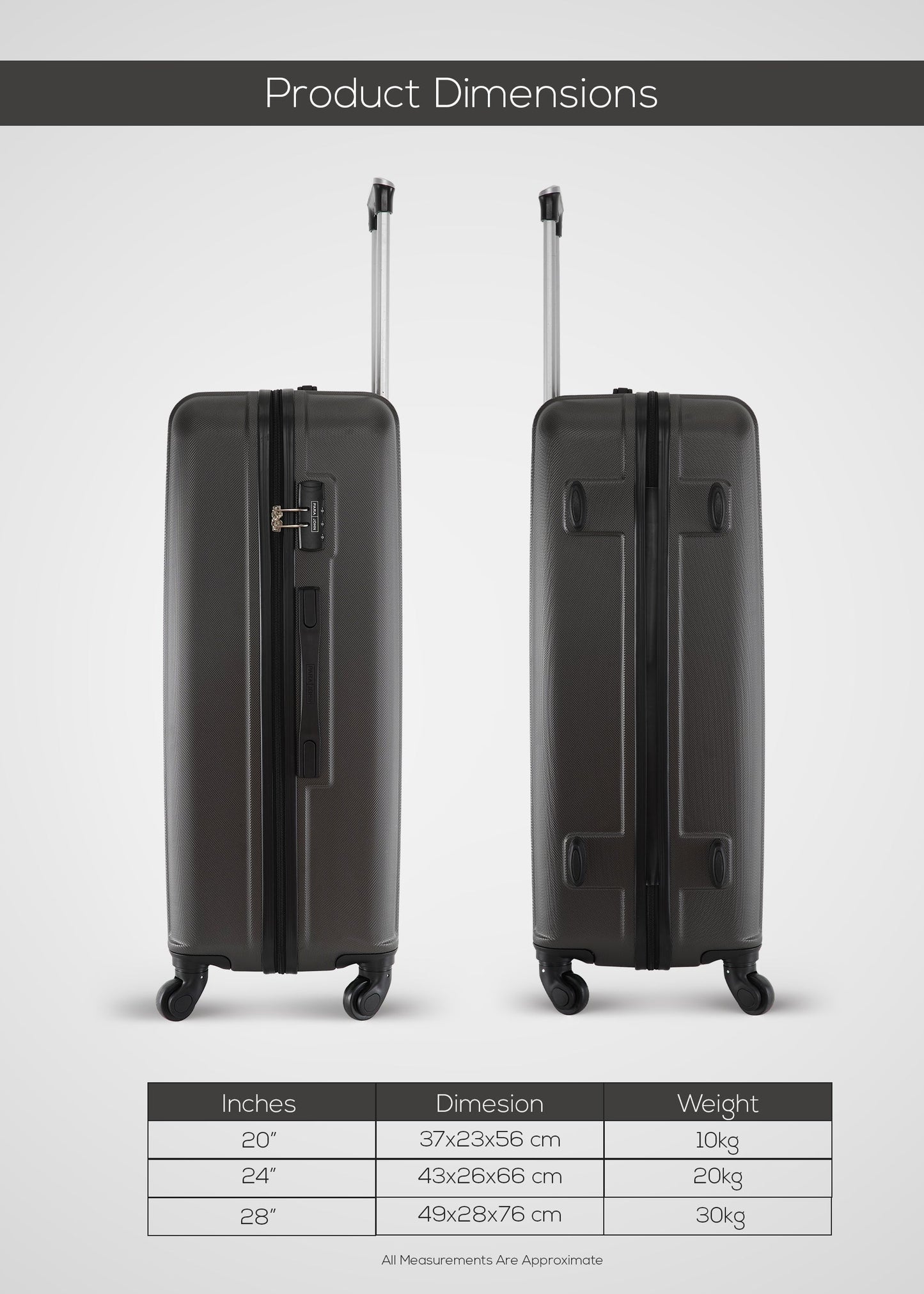 استمتع بالسفر المميز معسلسلة بارا جون كينوالأمتعة المصنوعة بعناية منمادة ABS فائقة المتانةمادة متينة للغاية وخفيفة الوزن. إنها أنيقة وجريئةتصميميضيف لمسة أنيقة، مما يسمح لك بالسفر بأناقة مع الإدلاء ببيان أينما ذهبت.