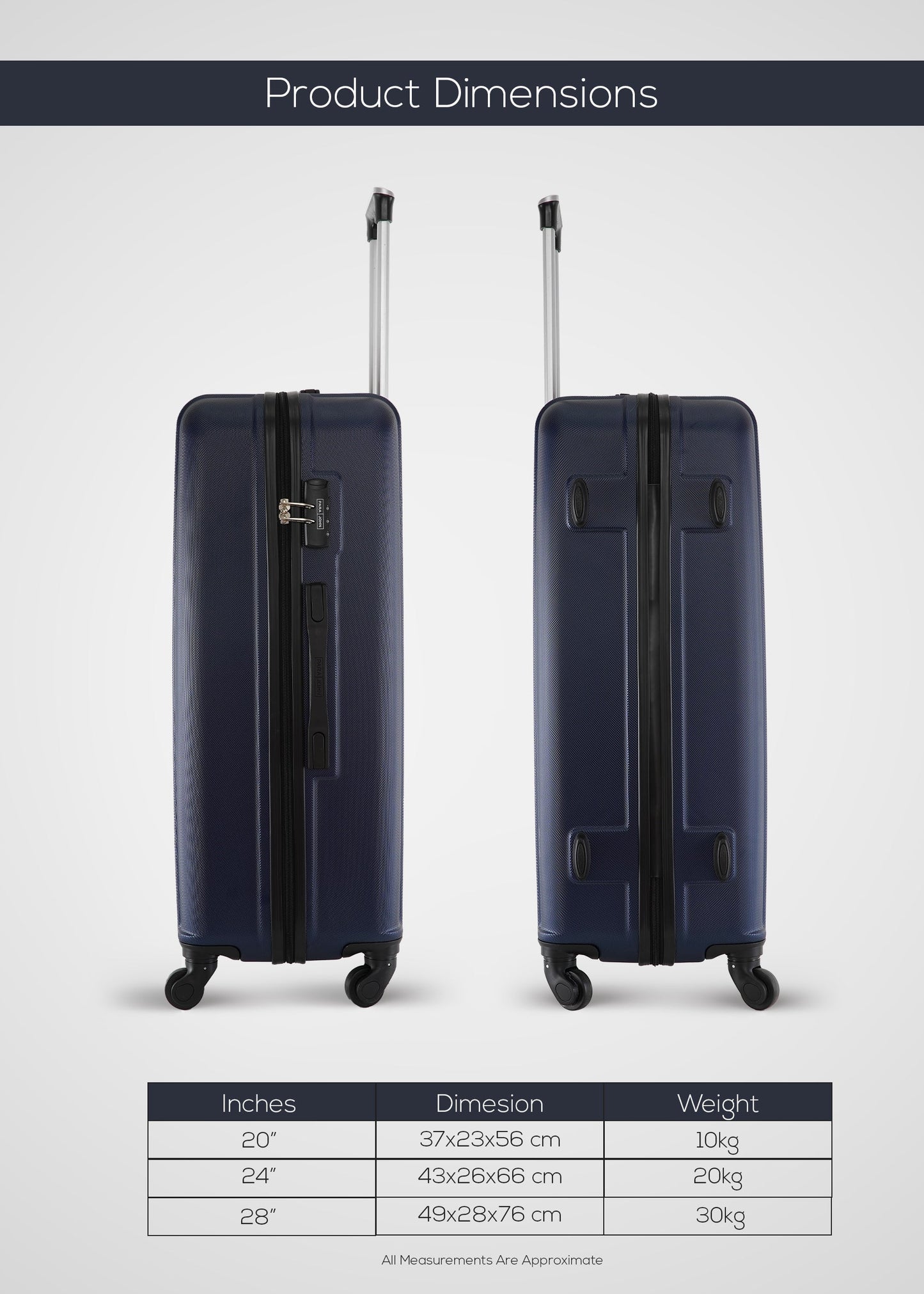 - تصميم متين من مادة ABS ذات الجوانب الصلبة للسفر الآمن وطويل الأمد.