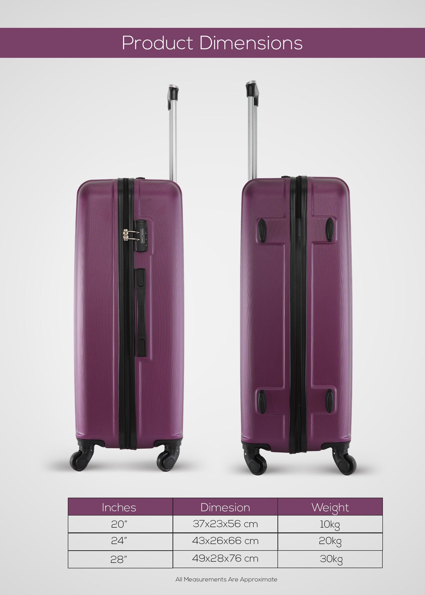 - ضمان لمدة سنتين:لا تقلق بشأن أي شيء مع ضماننا لمدة عامين، مما يضمن أن أمتعتك مصممة لتدوم طويلاً ومدعومة بالتزامنا بالجودة.