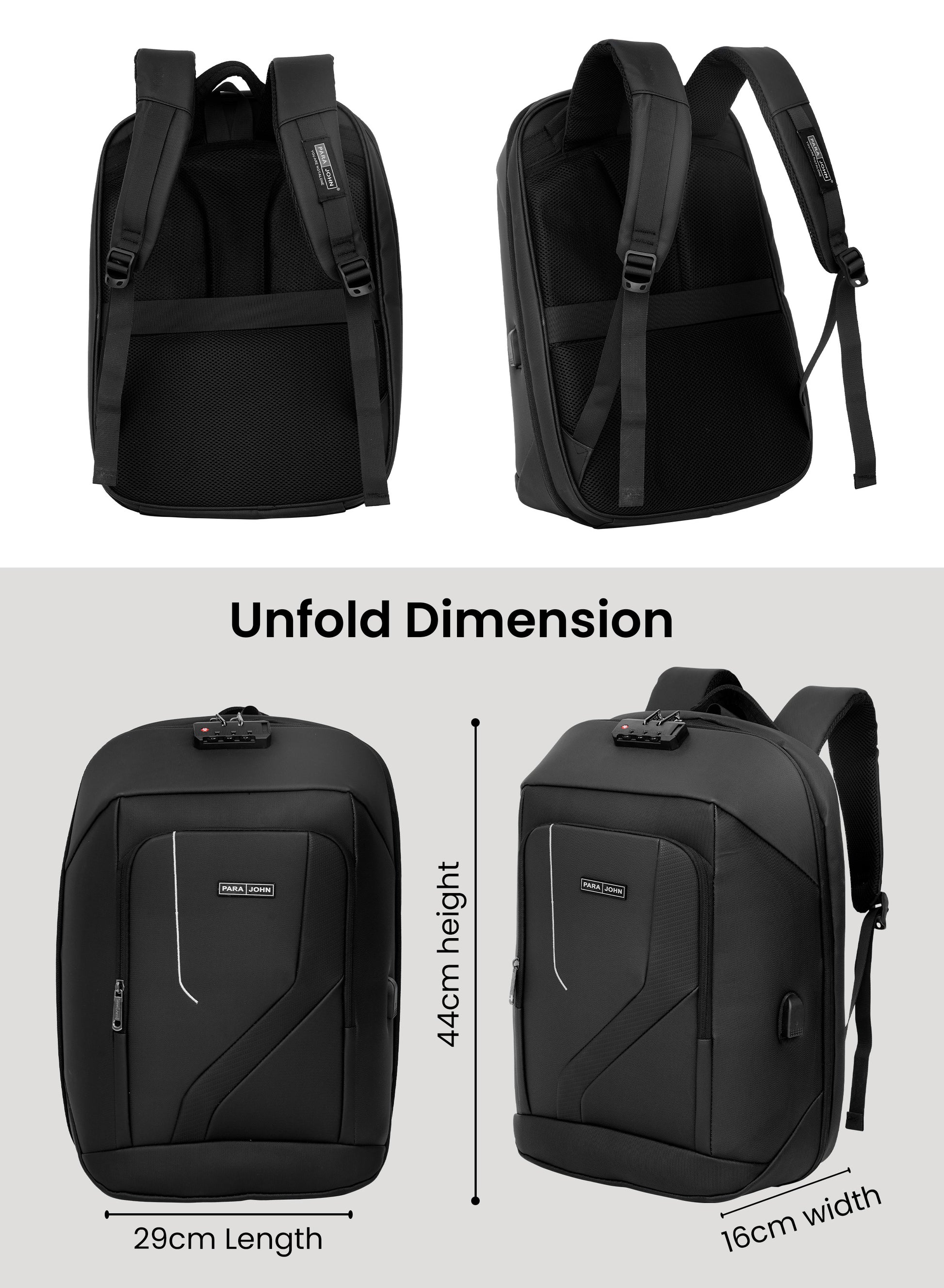 Para John ITRAX 19 inches Laptop Backpack – 30L Capacity, Functional & Durable with Multi-Pocket Organization, Charging Port, Locking System and Hidden Compartment