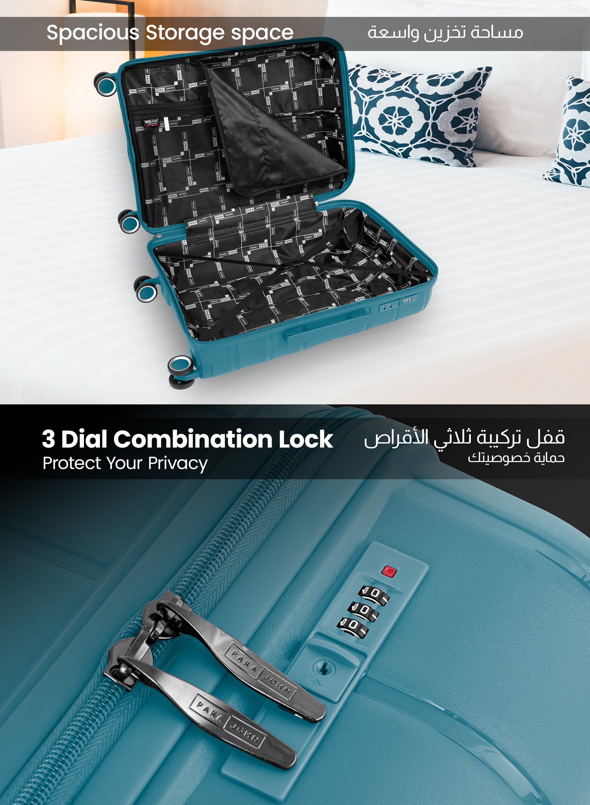 - Innovative Features: Our luggage comes with 360° spinner wheels, built-in combination locks, and smooth retractable handles for effortless travel.