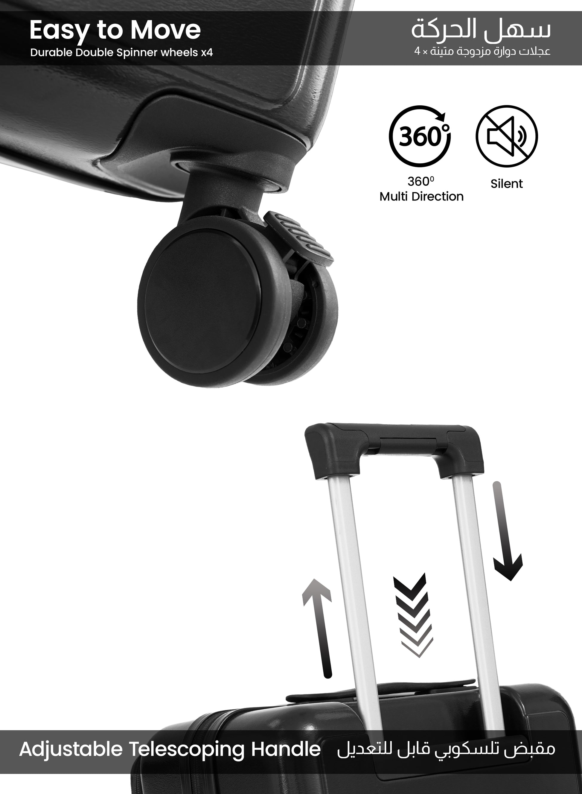 - Innovative Features: Our luggage comes with 360° spinner wheels, built-in combination locks, and smooth retractable handles for effortless travel.