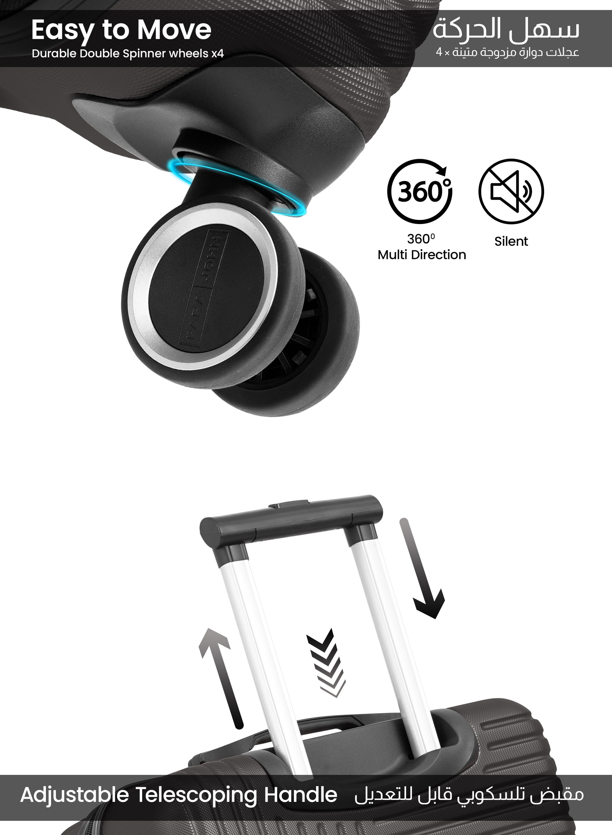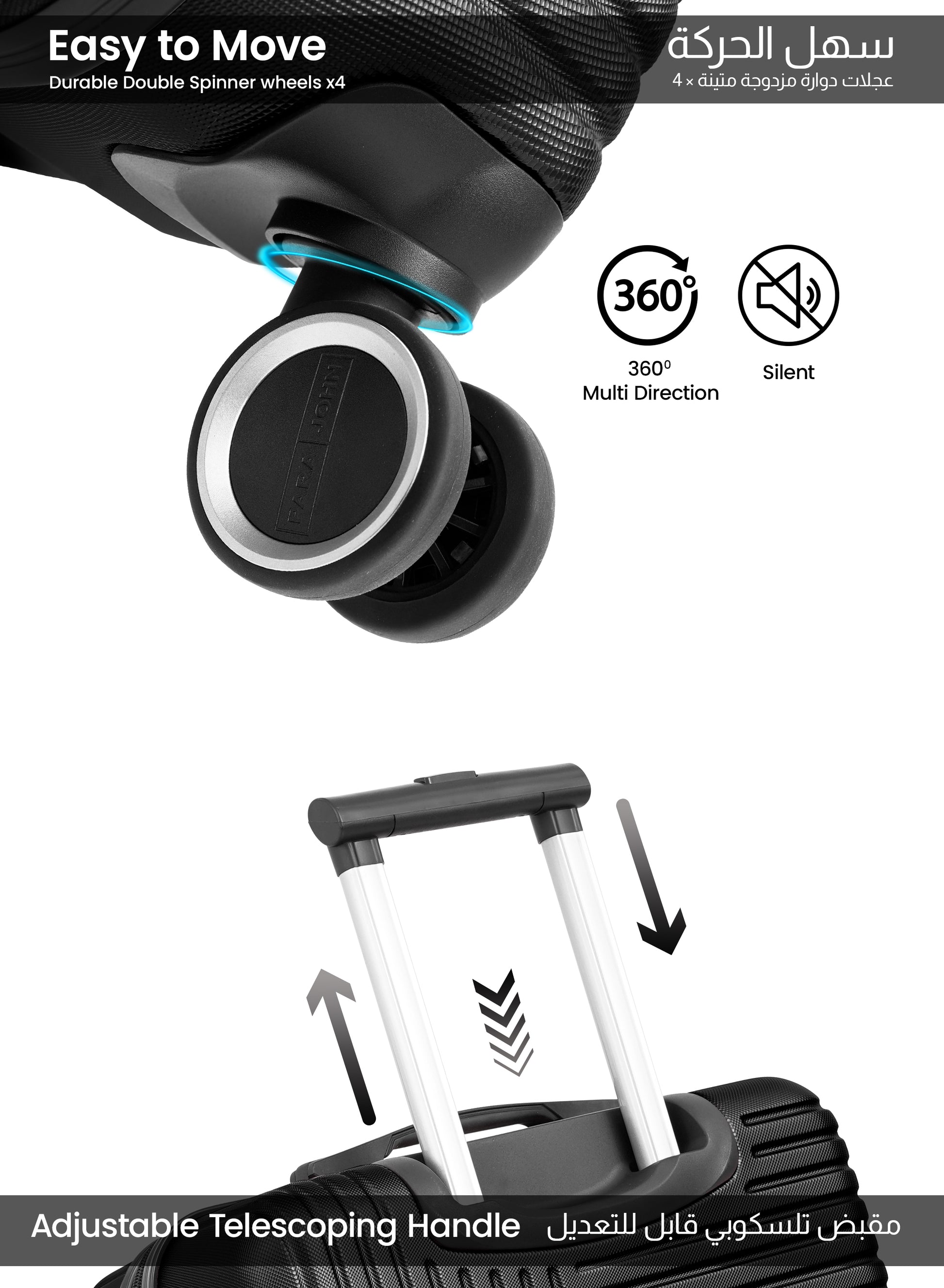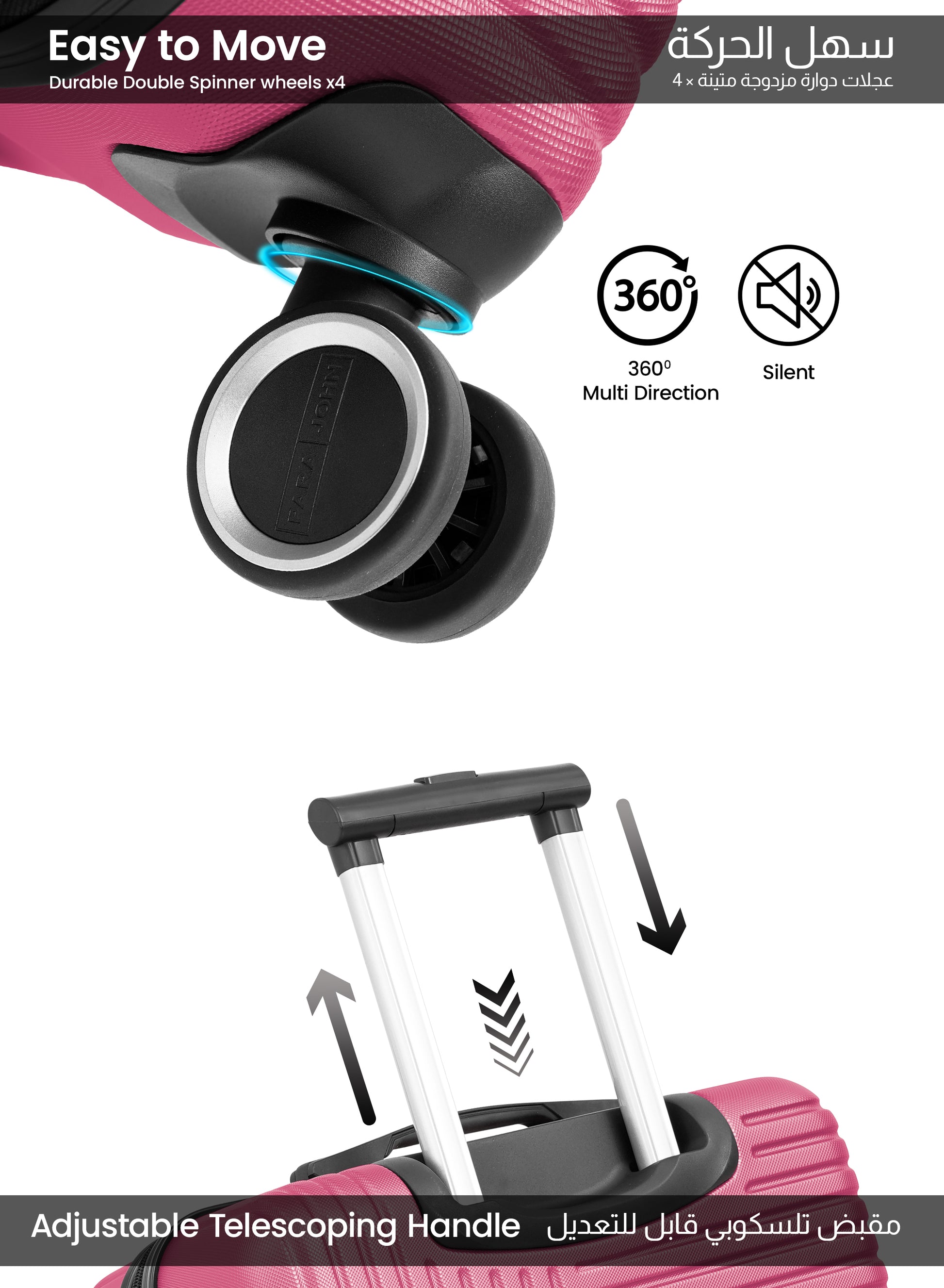 - Innovative Features: Our luggage comes with 360° spinner wheels, built-in combination locks, and smooth retractable handles for effortless travel.