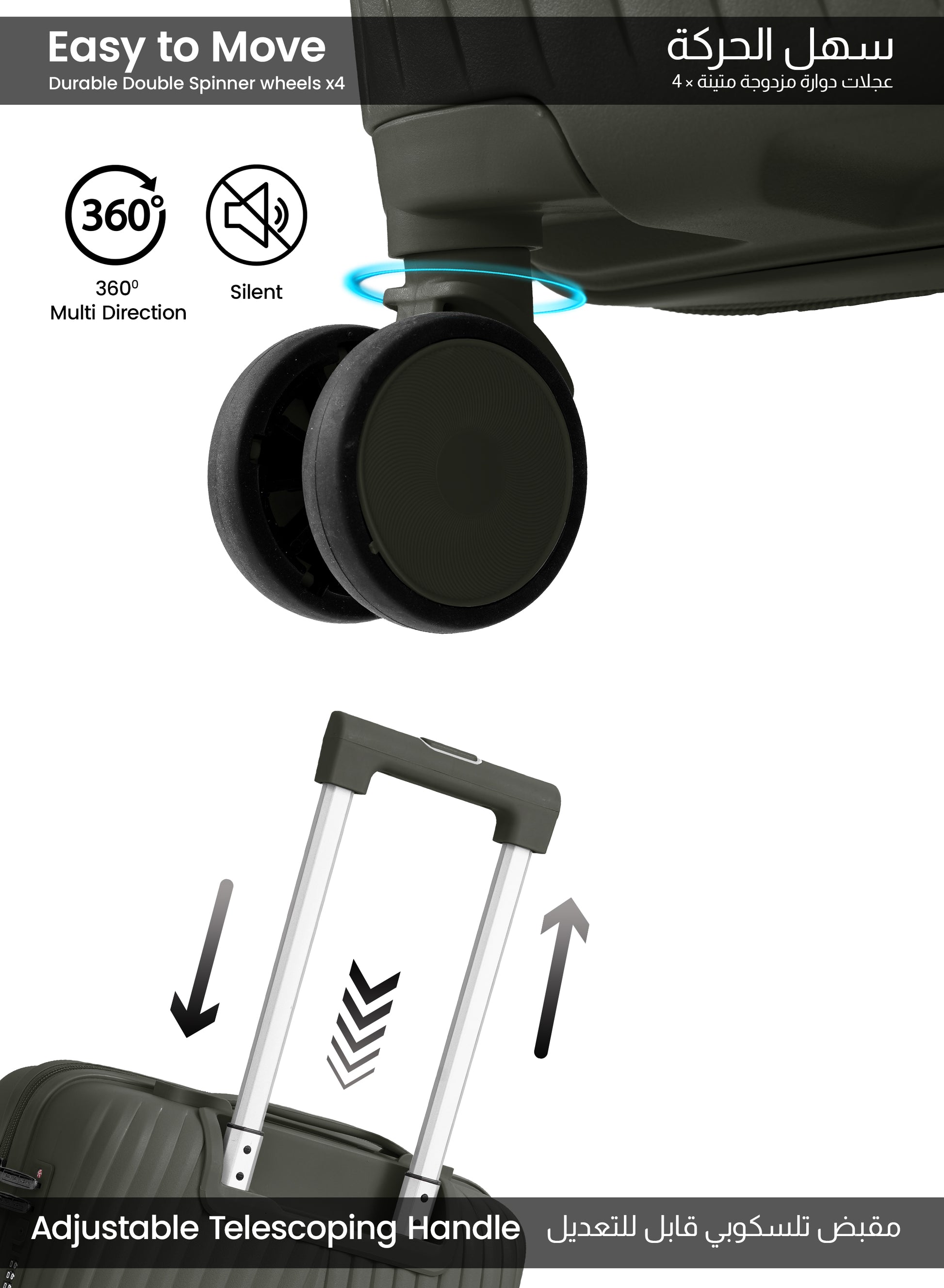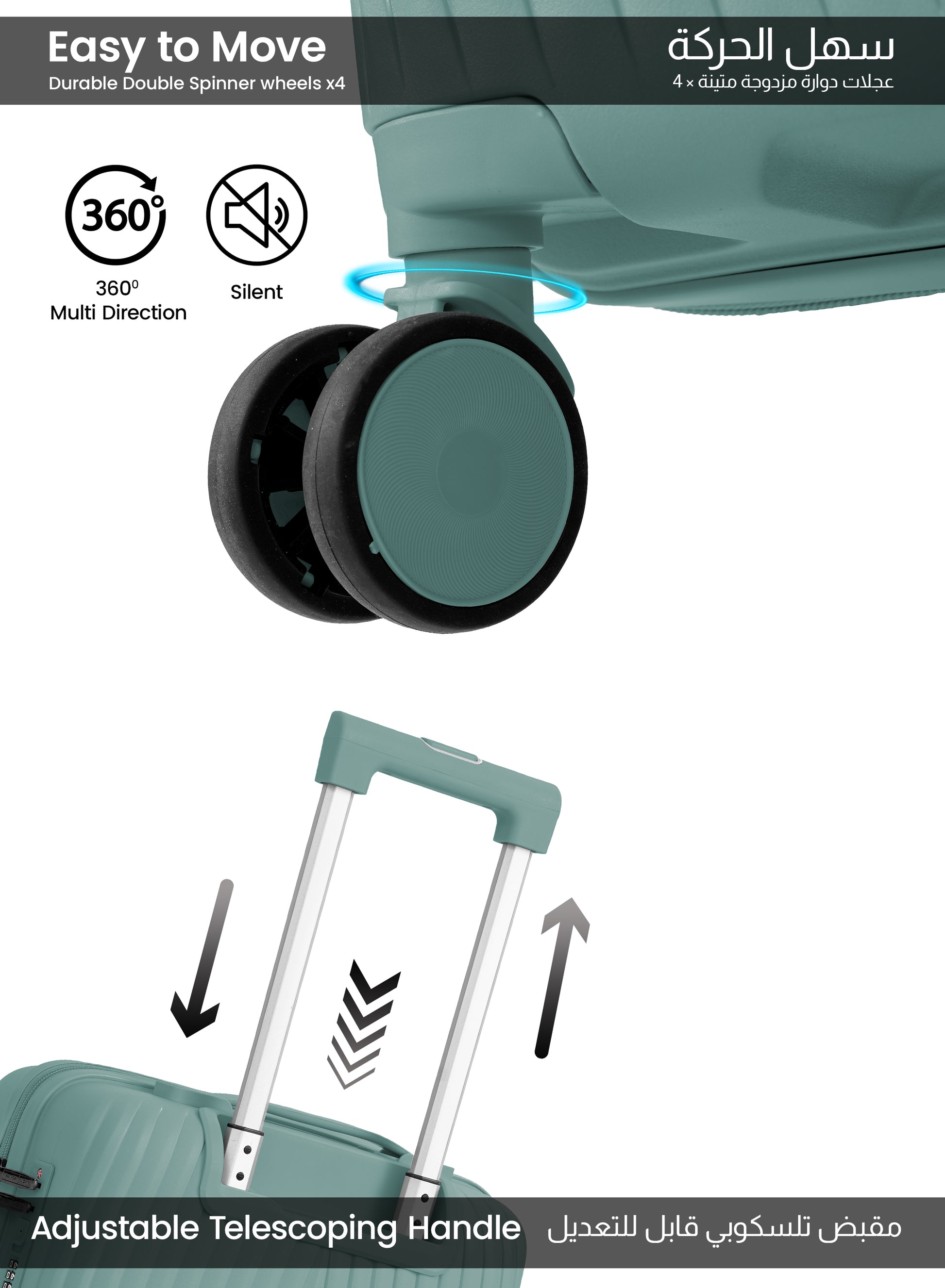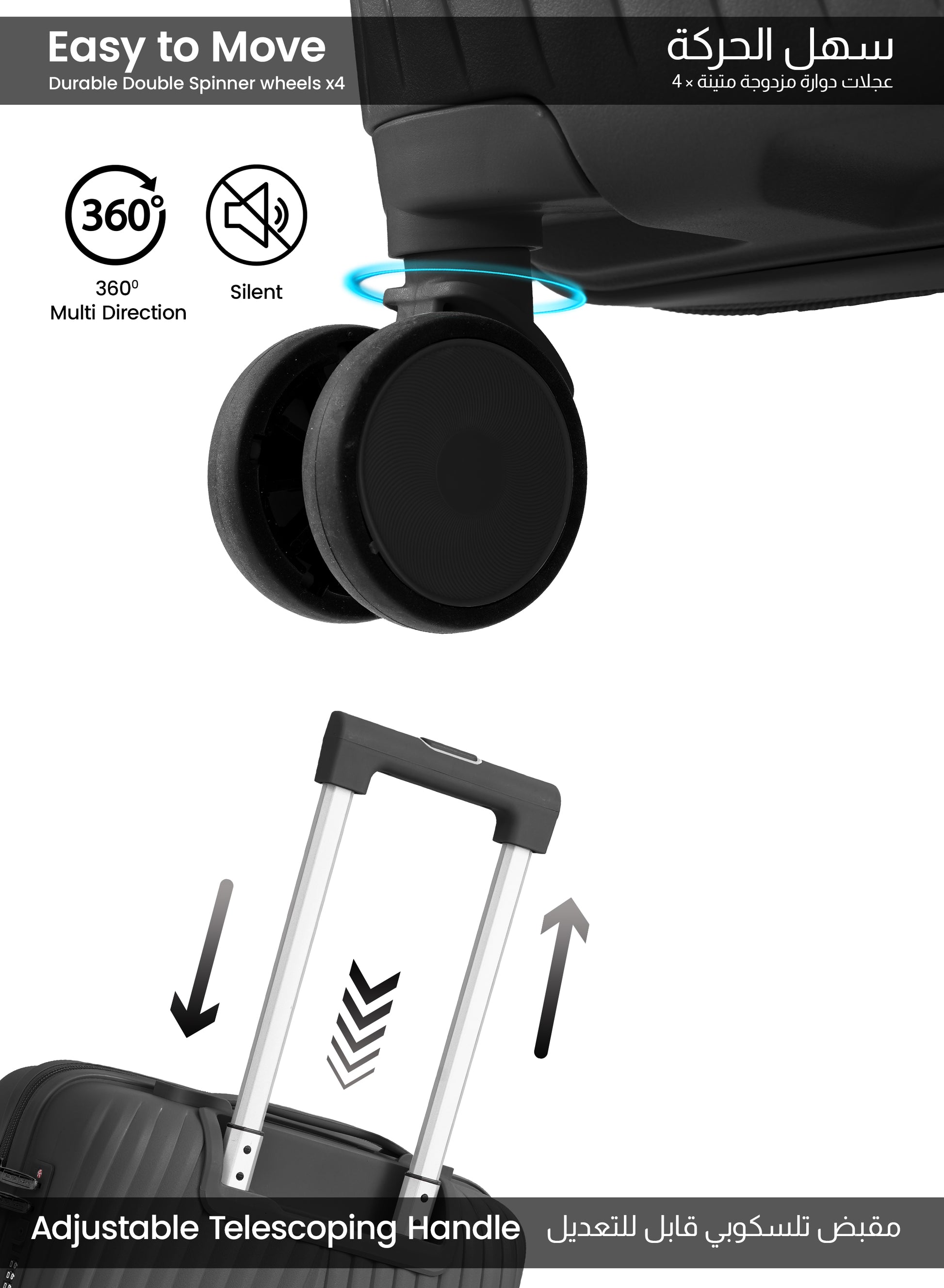 - Innovative Features: Our luggage comes with 360° spinner wheels, built-in combination locks, and smooth retractable handles for effortless travel.