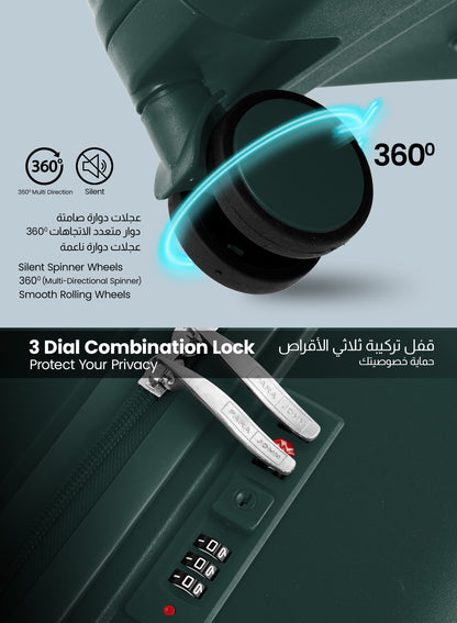 - Innovative Features: Our luggage comes with 360° spinner wheels, built-in combination locks, and smooth retractable handles for effortless travel.